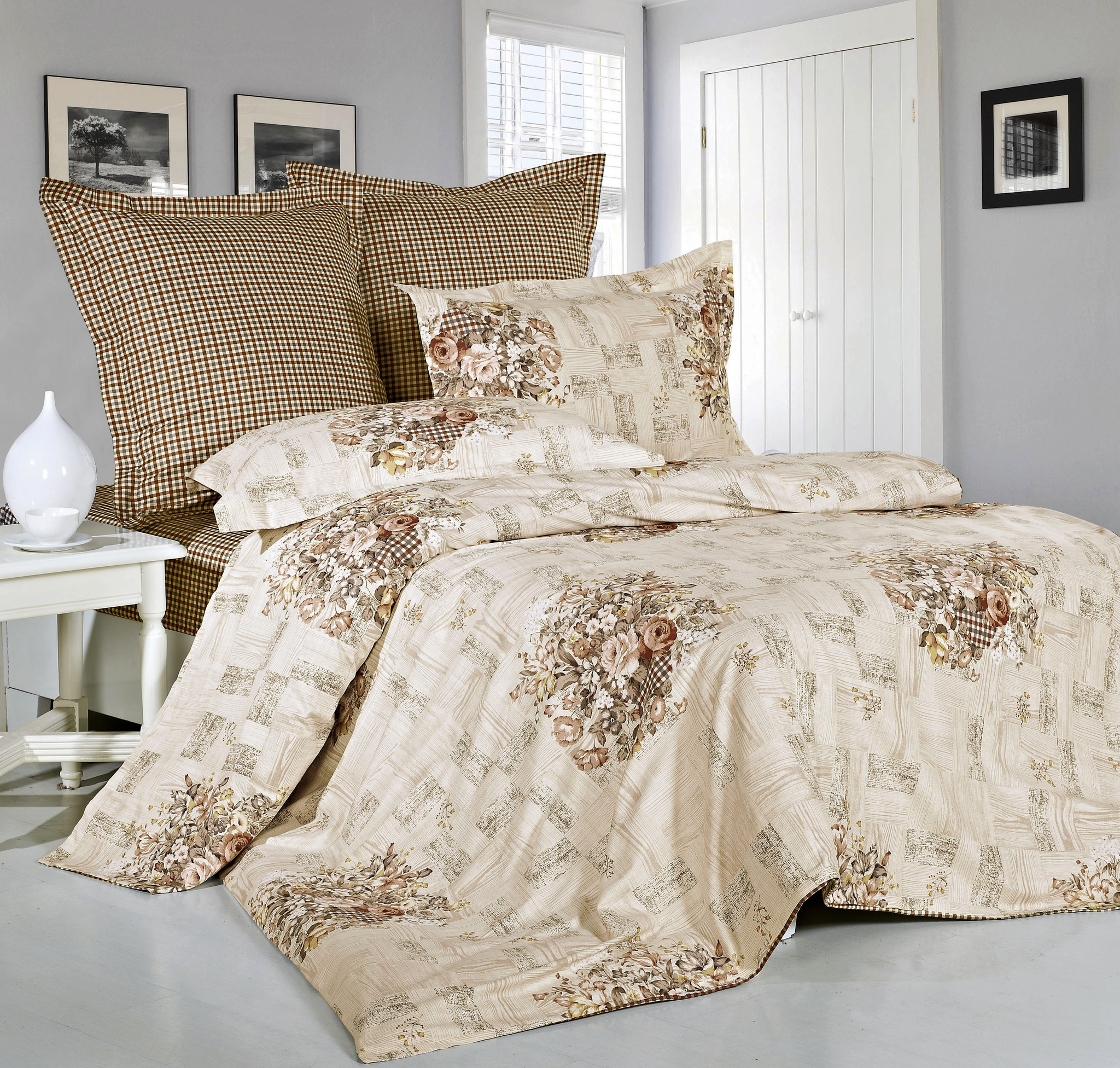 - Евро (пододеяльник 200х220 1шт, простыня 230х250 1шт, наволочка 50х70 2шт, 70х70 2шт)