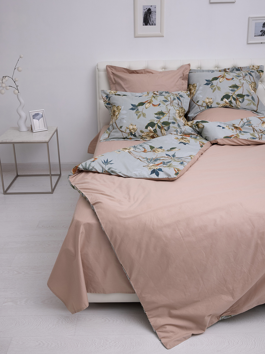Постельное бельё выполнено из высококачественного хлопка, обеспечивающего комфортный сон и эстетическое удовольствие. Отличается гладкой текстурой, приятной на ощупь и стойкостью к износу.