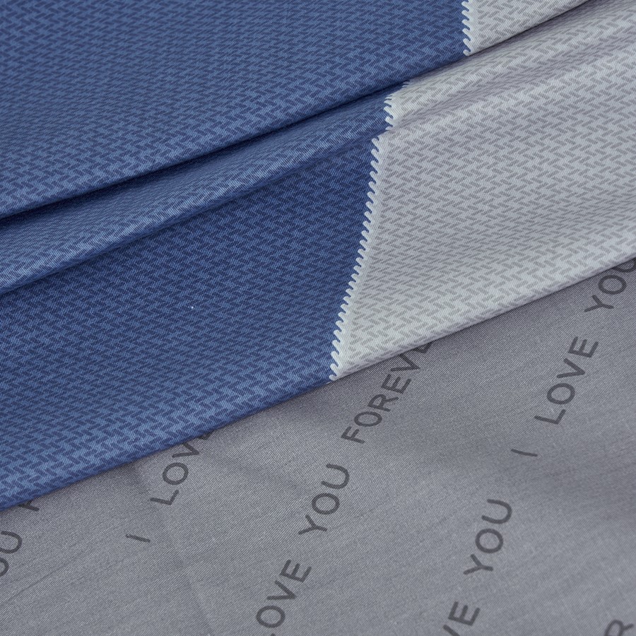 Комплекты выполнены из двух тканей-компаньонов. Из основной ткани: одна сторона пододеяльника, наволочки 70х70 см, одна сторона наволочек 50х70 см. Из ткани-компаньона: вторая сторона пододеяльника, простыня, одна сторона наволочек 50х70 см.