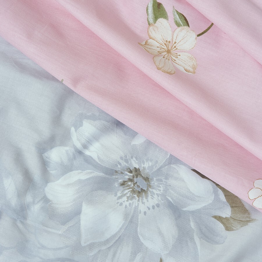 Комплекты выполнены из двух тканей-компаньонов. Из основной ткани: одна сторона пододеяльника, наволочки 70х70 см, одна сторона наволочек 50х70 см. Из ткани-компаньона: вторая сторона пододеяльника, простыня, одна сторона наволочек 50х70 см.