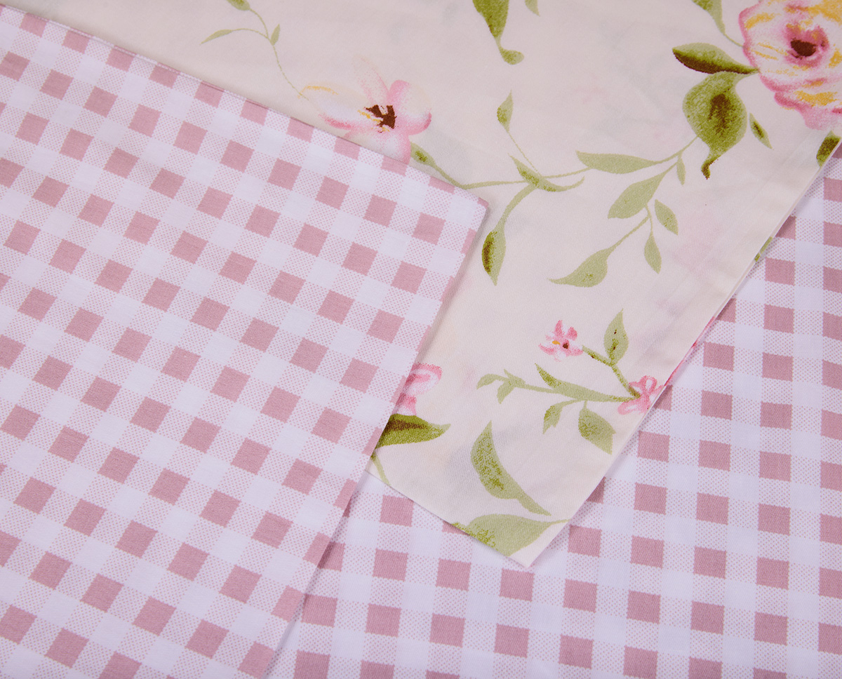 Комплекты выполнены из двух тканей-компаньонов. Из основной ткани: одна сторона пододеяльника, наволочки 70х70 см, одна сторона наволочек 50х70 см. Из ткани-компаньона: вторая сторона пододеяльника, простыня, одна сторона наволочек 50х70 см.