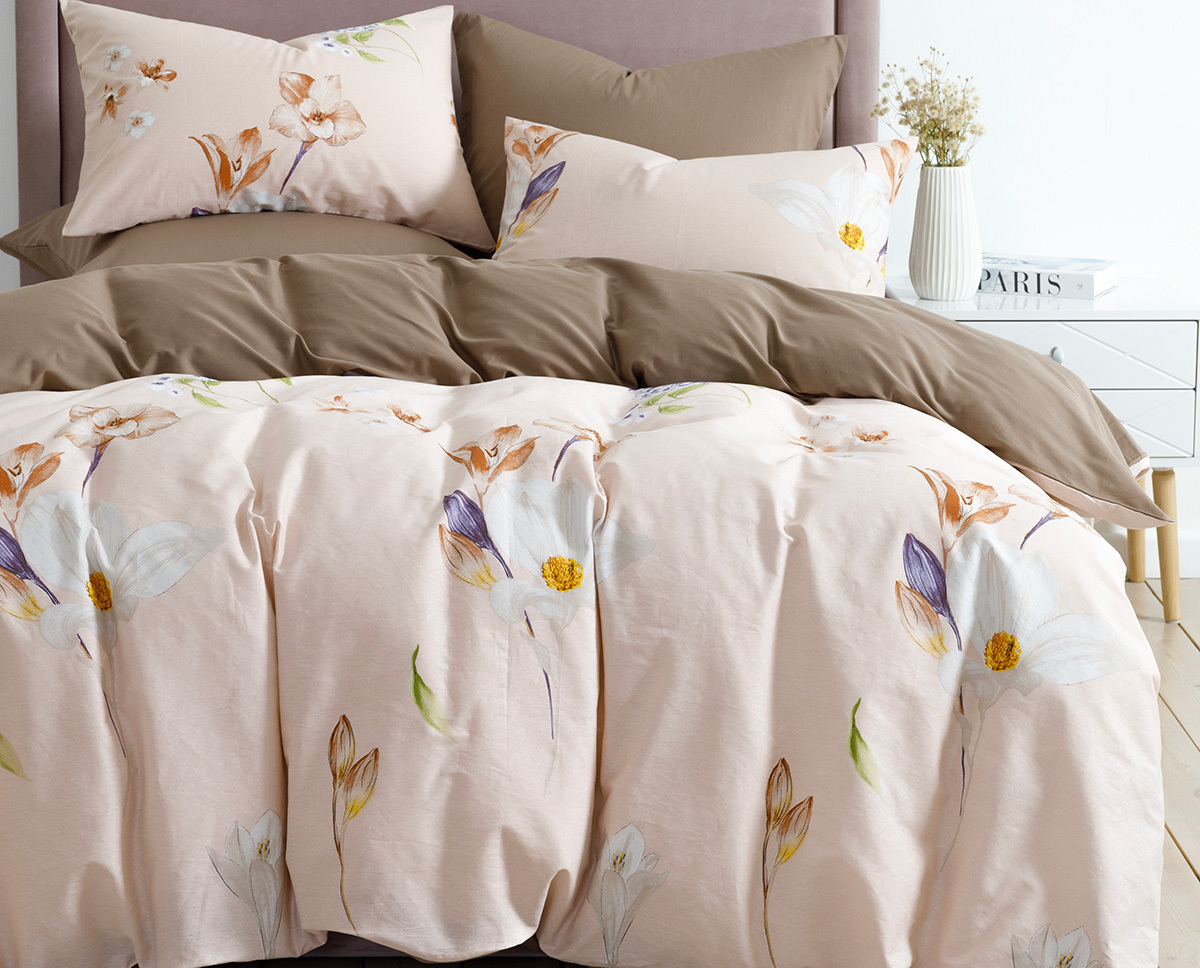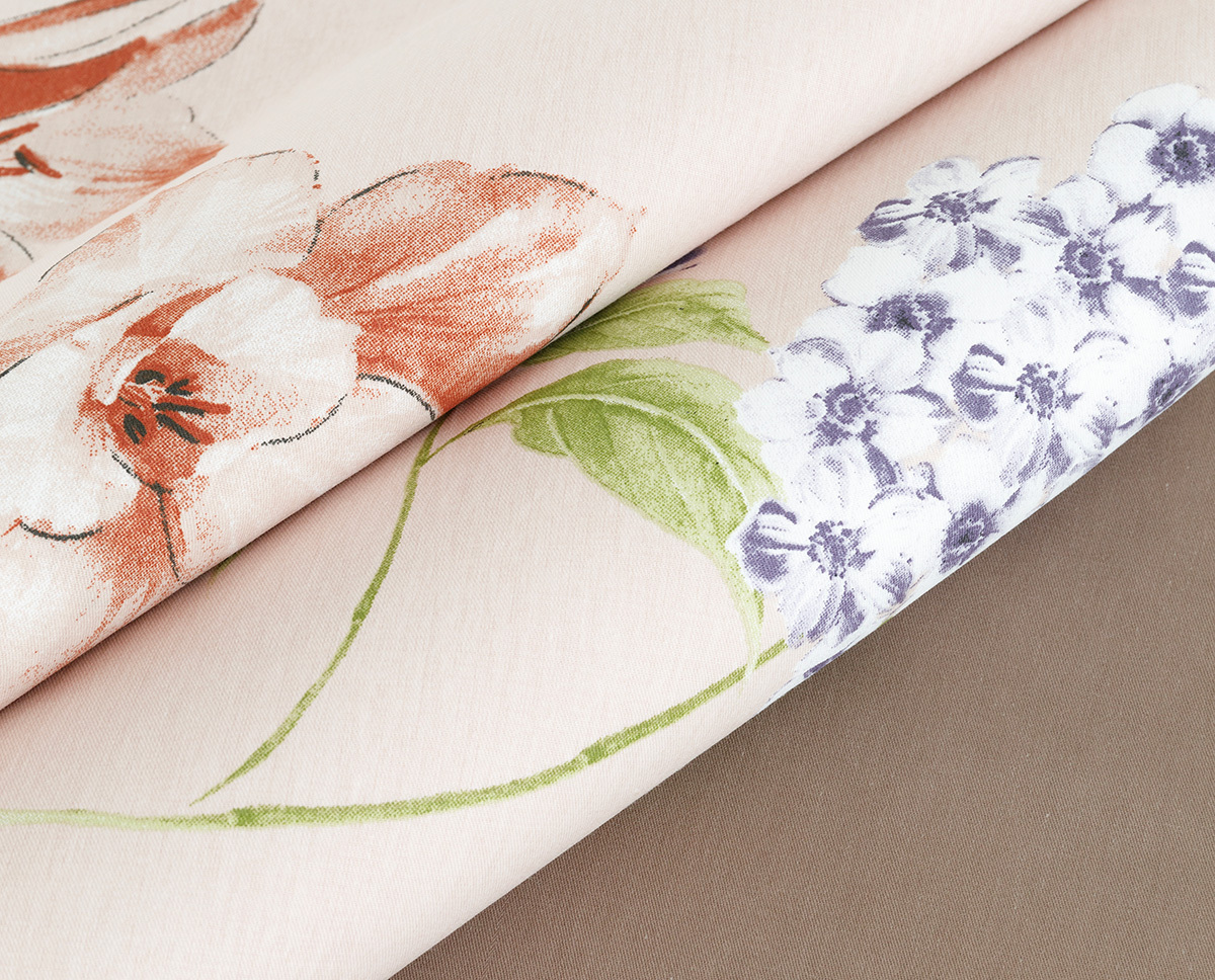 Комплекты выполнены из двух тканей-компаньонов. Из основной ткани: одна сторона пододеяльника, наволочки 70х70 см, одна сторона наволочек 50х70 см. Из ткани-компаньона: вторая сторона пододеяльника, простыня, одна сторона наволочек 50х70 см.