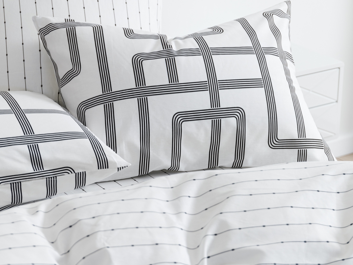 Комплекты выполнены из двух тканей-компаньонов. Из основной ткани: одна сторона пододеяльника, наволочки 70х70 см, одна сторона наволочек 50х70 см. Из ткани-компаньона: вторая сторона пододеяльника, простыня, одна сторона наволочек 50х70 см.