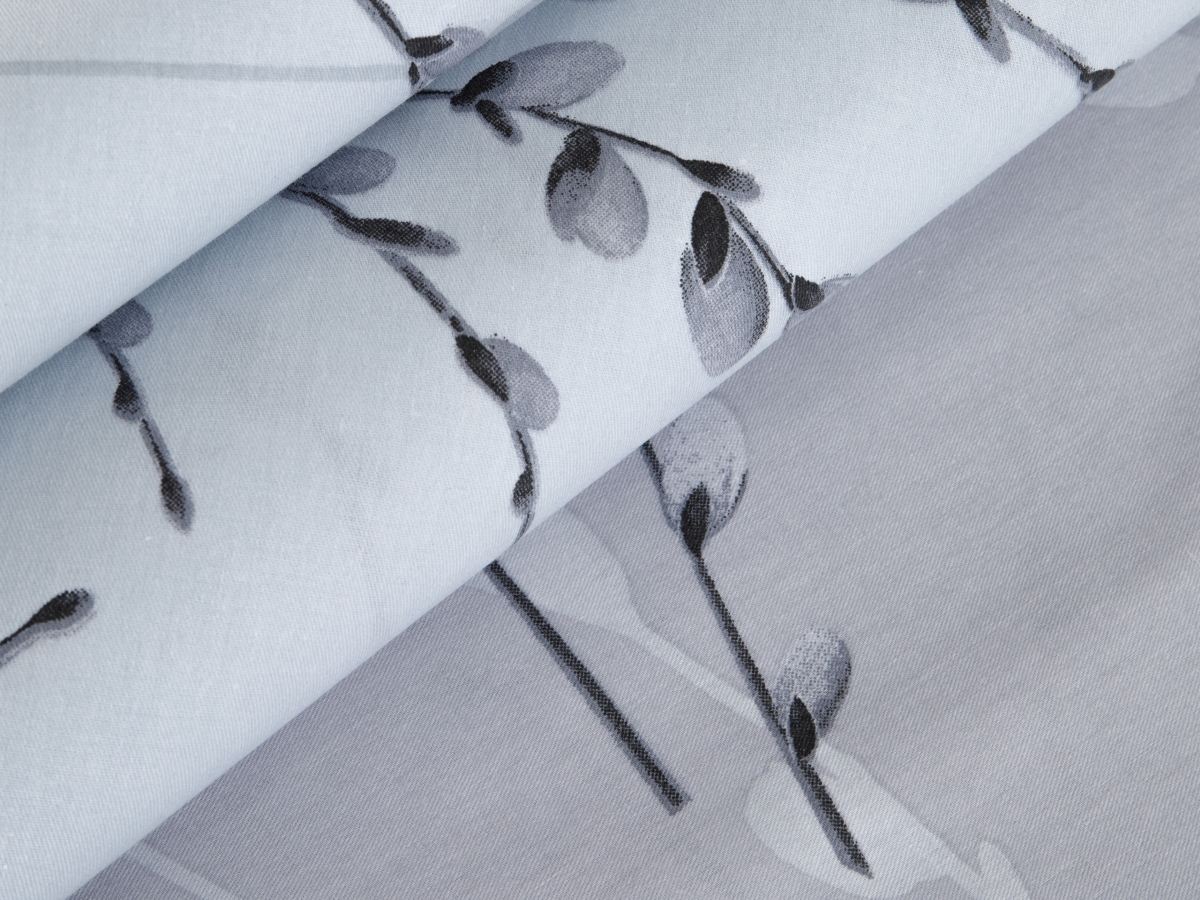 Комплекты выполнены из двух тканей-компаньонов. Из основной ткани: одна сторона пододеяльника, наволочки 70х70 см, одна сторона наволочек 50х70 см. Из ткани-компаньона: вторая сторона пододеяльника, простыня, одна сторона наволочек 50х70 см.