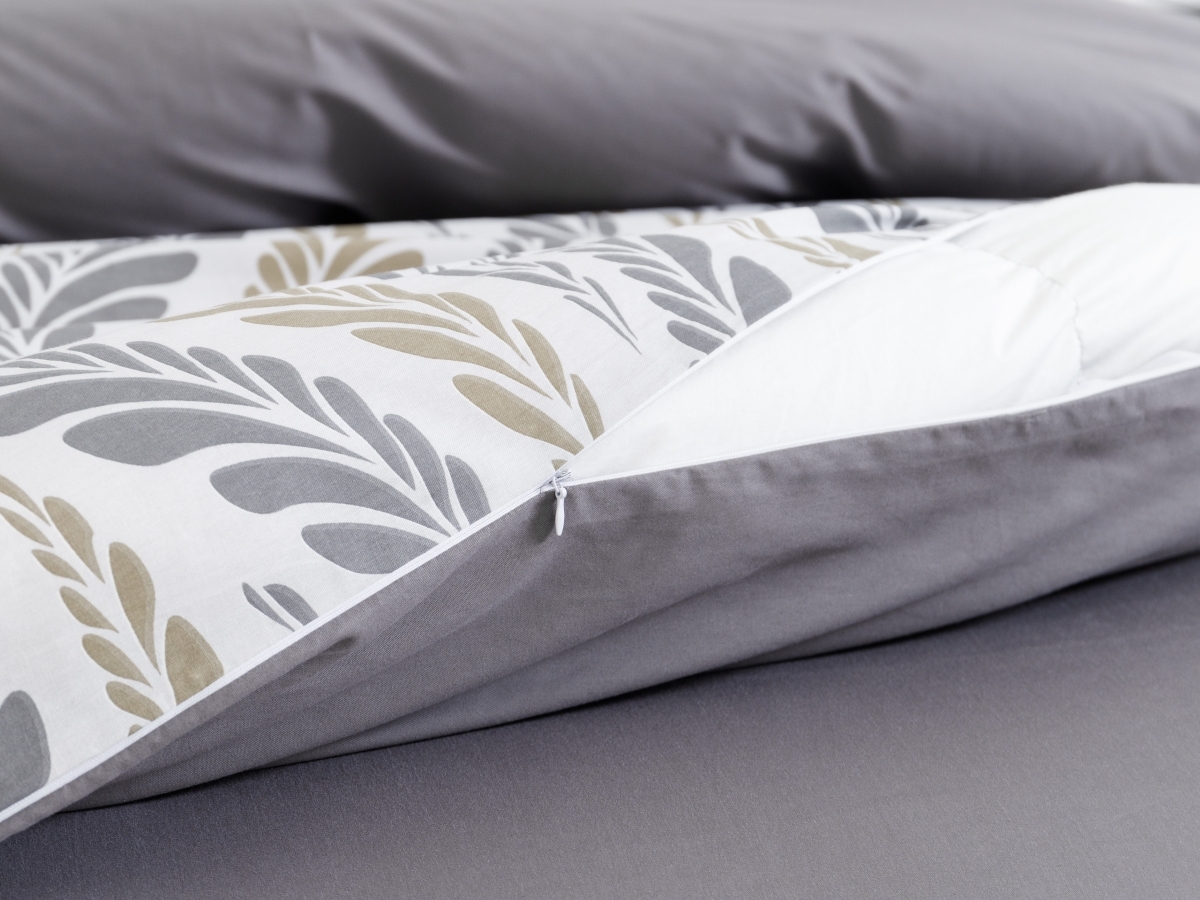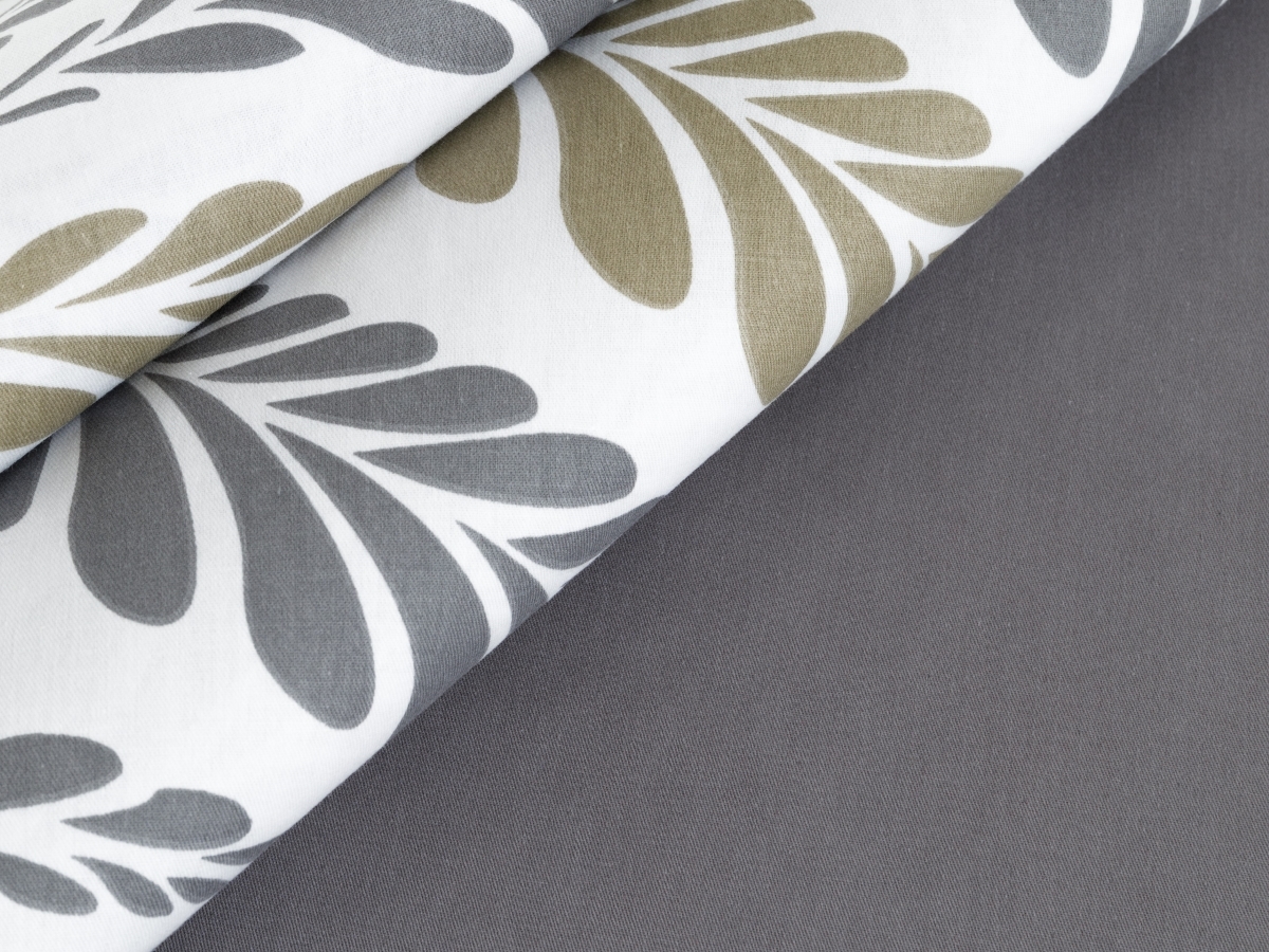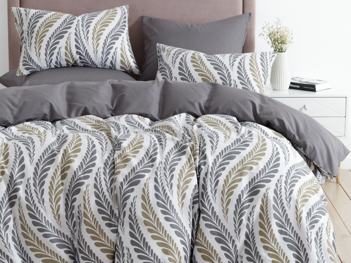 Комплекты выполнены из двух тканей-компаньонов. Из основной ткани: одна сторона пододеяльника, наволочки 70х70 см, одна сторона наволочек 50х70 см. Из ткани-компаньона: вторая сторона пододеяльника, простыня, одна сторона наволочек 50х70 см.