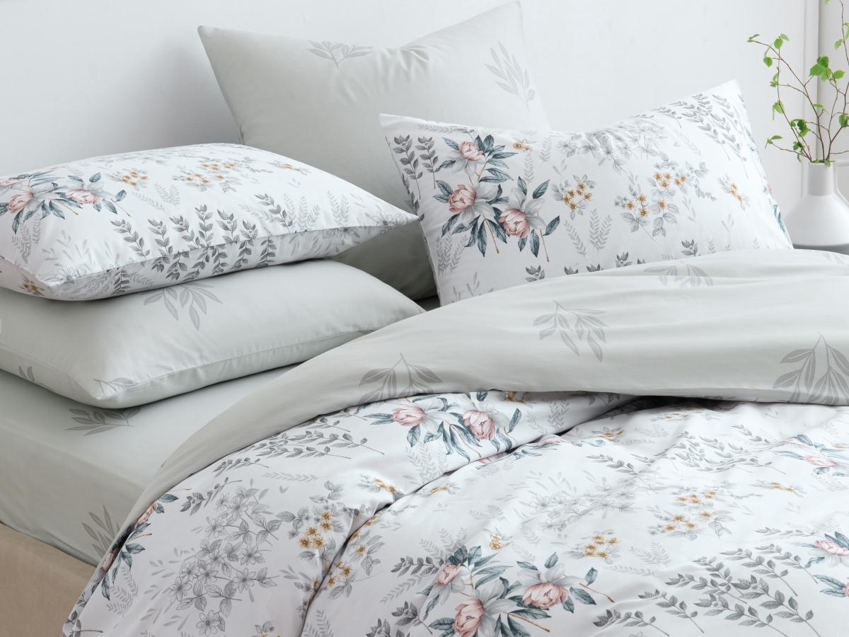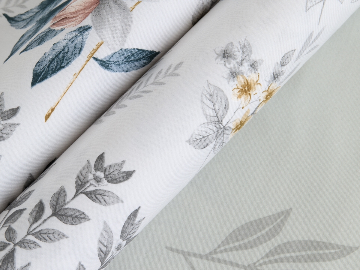Комплекты выполнены из двух тканей-компаньонов. Из основной ткани: одна сторона пододеяльника, наволочки 70х70 см, одна сторона наволочек 50х70 см. Из ткани-компаньона: вторая сторона пододеяльника, простыня, одна сторона наволочек 50х70 см.