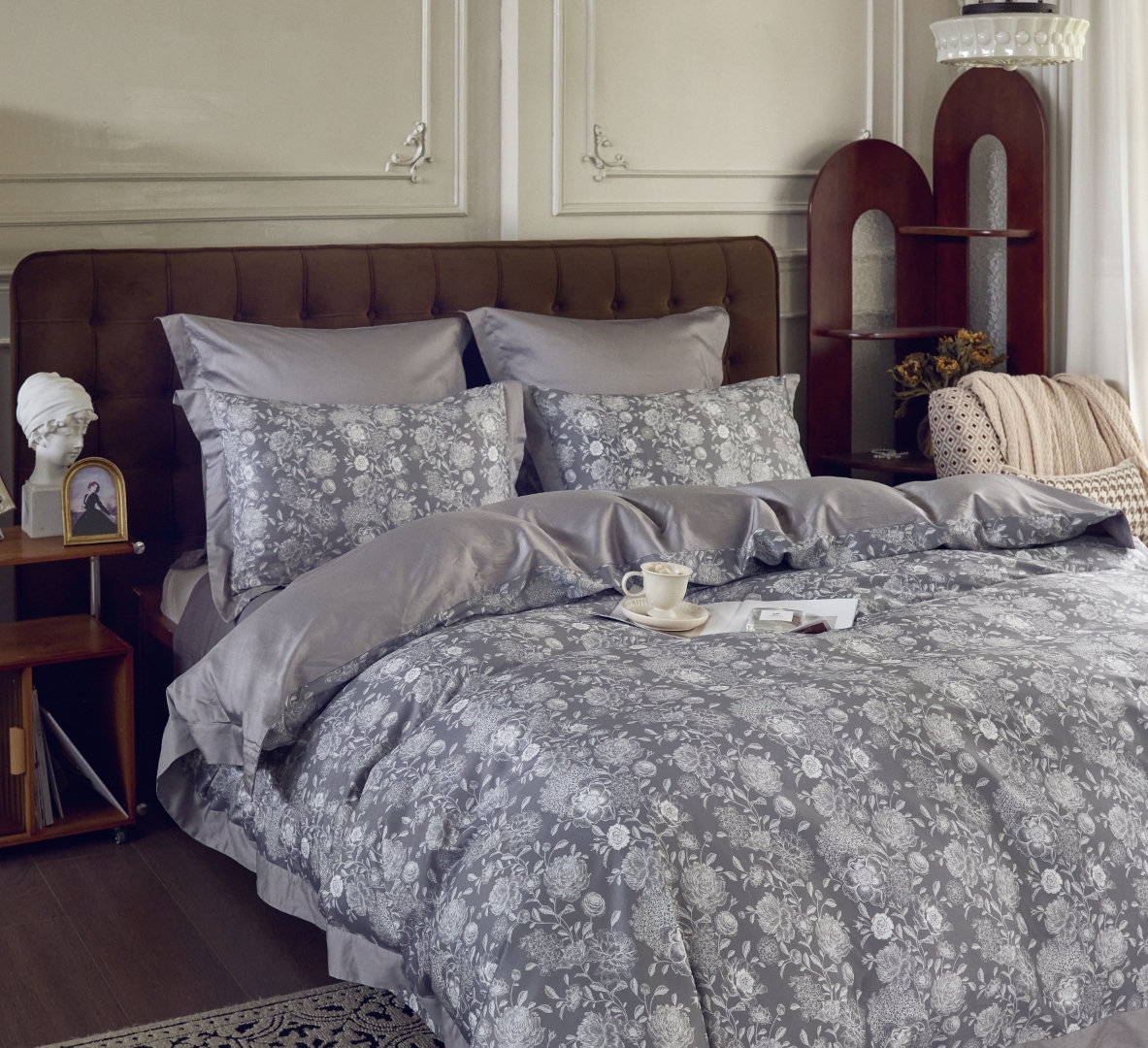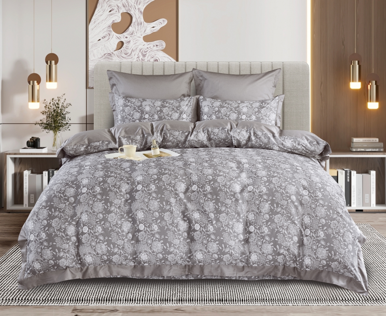 Коллекция T - это комплекты постельного белья из сатина премиум качества. Тонкий и плотный материал получается благодаря частому переплетению тонких и гладких нитей из длинноволокнистого хлопка. Конструкция сатина: 60*60s, 200х98 (300 TC), плетение 4:1, поверхностная плотность 130 г/м2. Активное крашение ткани делает рисунок максимально стойким, ткань сохранит яркость цвета долгое время, не подвержена истиранию, не боится стирки при температуре 60 градусов. Ткань мягкая и шелковистая, с присущим классическому сатину атласным блеском. Благодаря каландрированию нити ткани приобретают равномерную плотность, а сама ткань стойкий естественный блеск. Нежный на ощупь, люкс-сатин меньше подвержен сминанию. А благодаря мерсеризации, ткань белья мягкая и струящаяся.