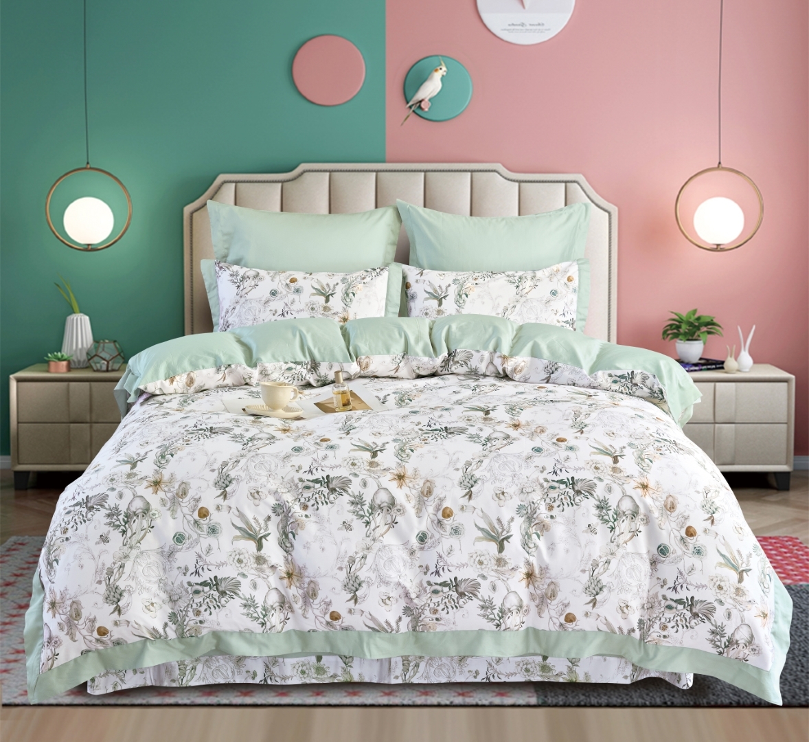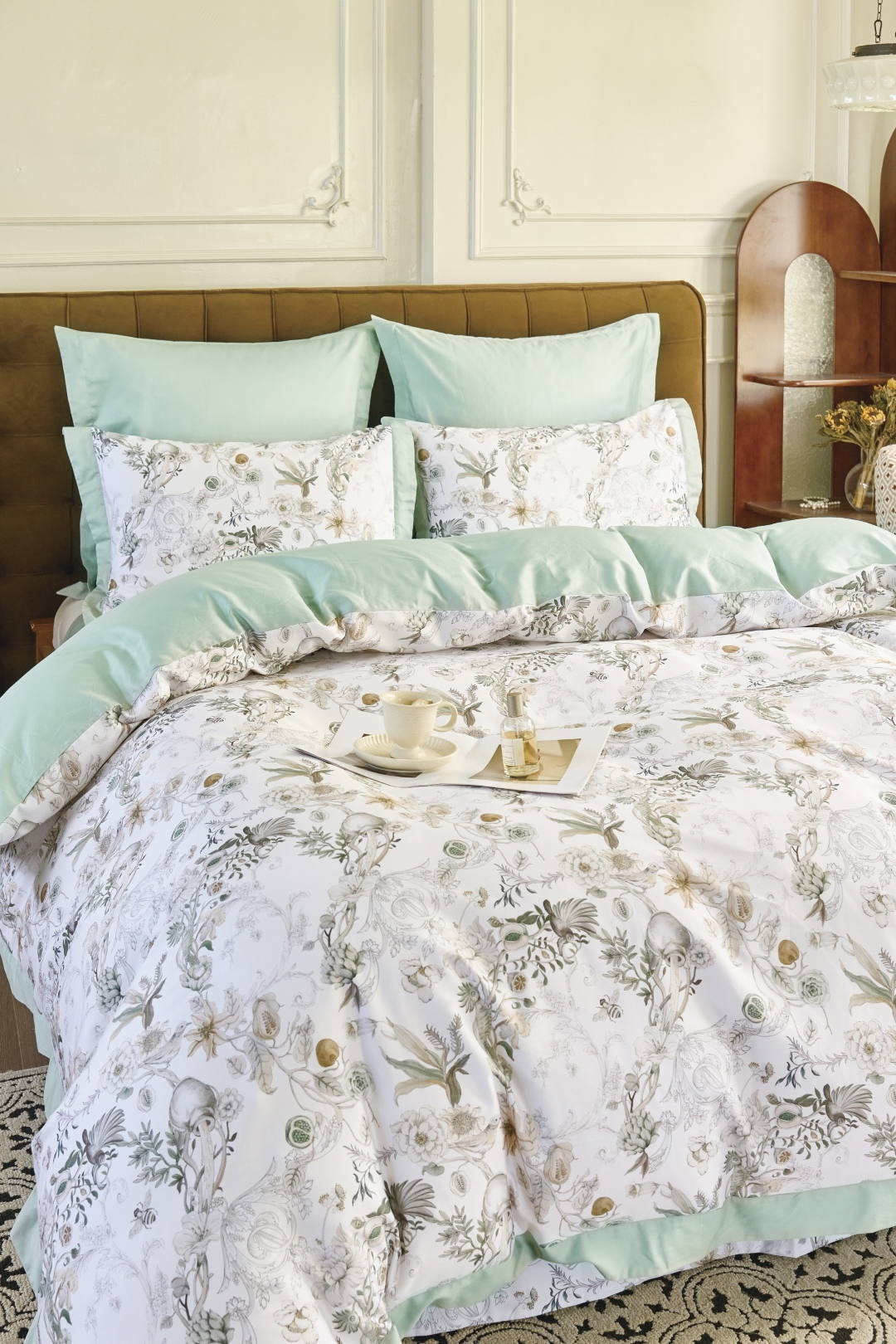 Коллекция T - это комплекты постельного белья из сатина премиум качества. Тонкий и плотный материал получается благодаря частому переплетению тонких и гладких нитей из длинноволокнистого хлопка. Конструкция сатина: 60*60s, 200х98 (300 TC), плетение 4:1, поверхностная плотность 130 г/м2. Активное крашение ткани делает рисунок максимально стойким, ткань сохранит яркость цвета долгое время, не подвержена истиранию, не боится стирки при температуре 60 градусов. Ткань мягкая и шелковистая, с присущим классическому сатину атласным блеском. Благодаря каландрированию нити ткани приобретают равномерную плотность, а сама ткань стойкий естественный блеск. Нежный на ощупь, люкс-сатин меньше подвержен сминанию. А благодаря мерсеризации, ткань белья мягкая и струящаяся.