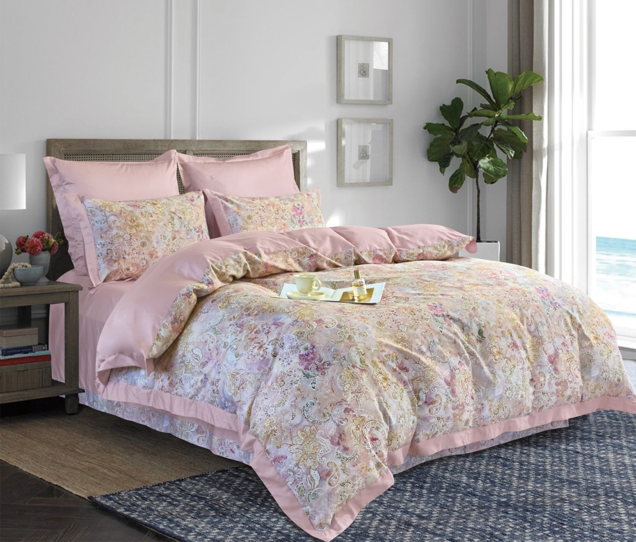 Коллекция T - это комплекты постельного белья из сатина премиум качества. Тонкий и плотный материал получается благодаря частому переплетению тонких и гладких нитей из длинноволокнистого хлопка. Конструкция сатина: 60*60s, 200х98 (300 TC), плетение 4:1, поверхностная плотность 130 г/м2. Активное крашение ткани делает рисунок максимально стойким, ткань сохранит яркость цвета долгое время, не подвержена истиранию, не боится стирки при температуре 60 градусов. Ткань мягкая и шелковистая, с присущим классическому сатину атласным блеском. Благодаря каландрированию нити ткани приобретают равномерную плотность, а сама ткань стойкий естественный блеск. Нежный на ощупь, люкс-сатин меньше подвержен сминанию. А благодаря мерсеризации, ткань белья мягкая и струящаяся.