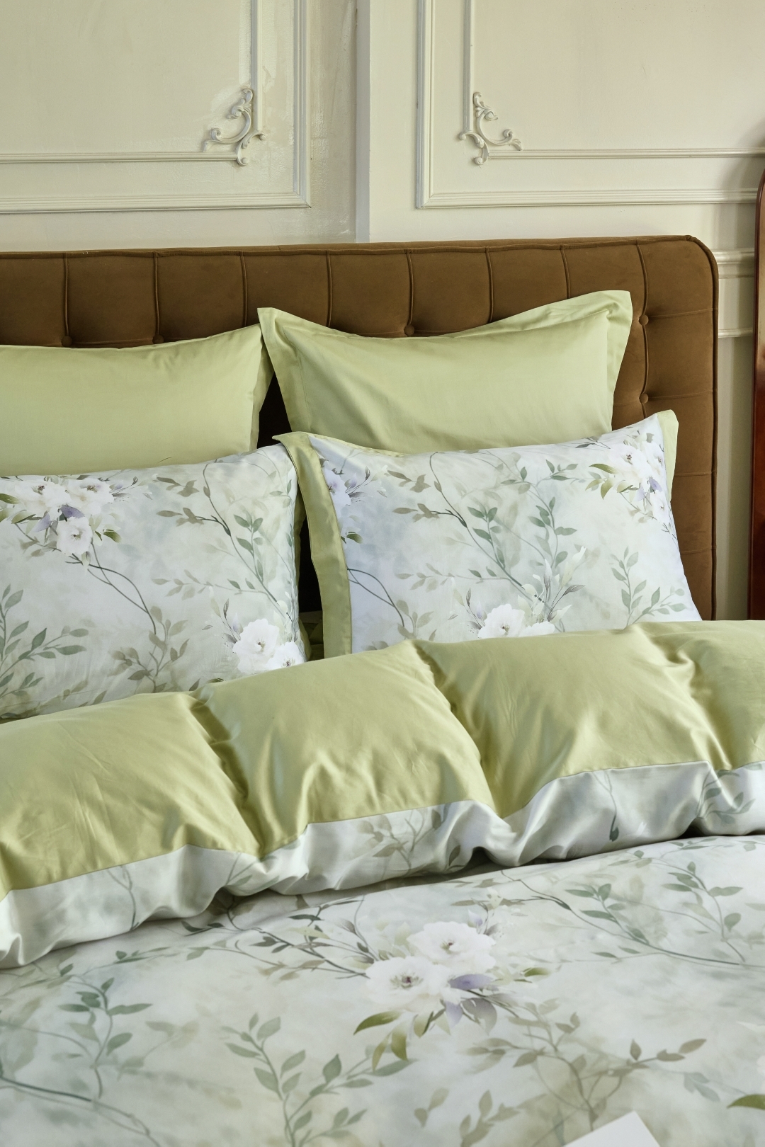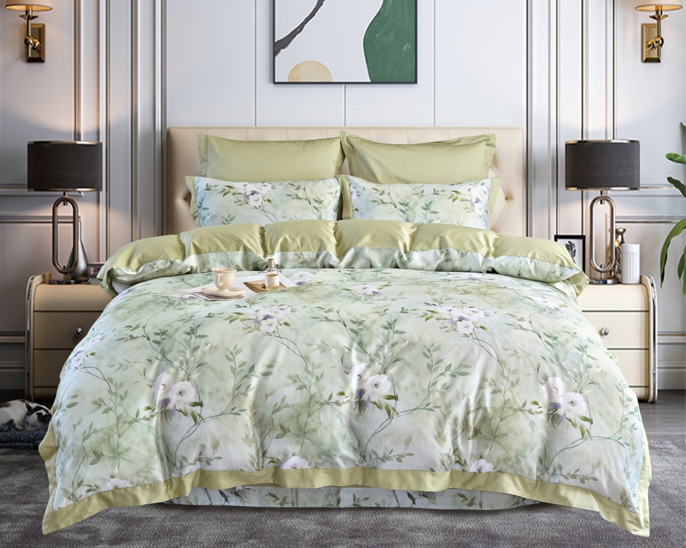 Коллекция T - это комплекты постельного белья из сатина премиум качества. Тонкий и плотный материал получается благодаря частому переплетению тонких и гладких нитей из длинноволокнистого хлопка. Конструкция сатина: 60*60s, 200х98 (300 TC), плетение 4:1, поверхностная плотность 130 г/м2. Активное крашение ткани делает рисунок максимально стойким, ткань сохранит яркость цвета долгое время, не подвержена истиранию, не боится стирки при температуре 60 градусов. Ткань мягкая и шелковистая, с присущим классическому сатину атласным блеском. Благодаря каландрированию нити ткани приобретают равномерную плотность, а сама ткань стойкий естественный блеск. Нежный на ощупь, люкс-сатин меньше подвержен сминанию. А благодаря мерсеризации, ткань белья мягкая и струящаяся.