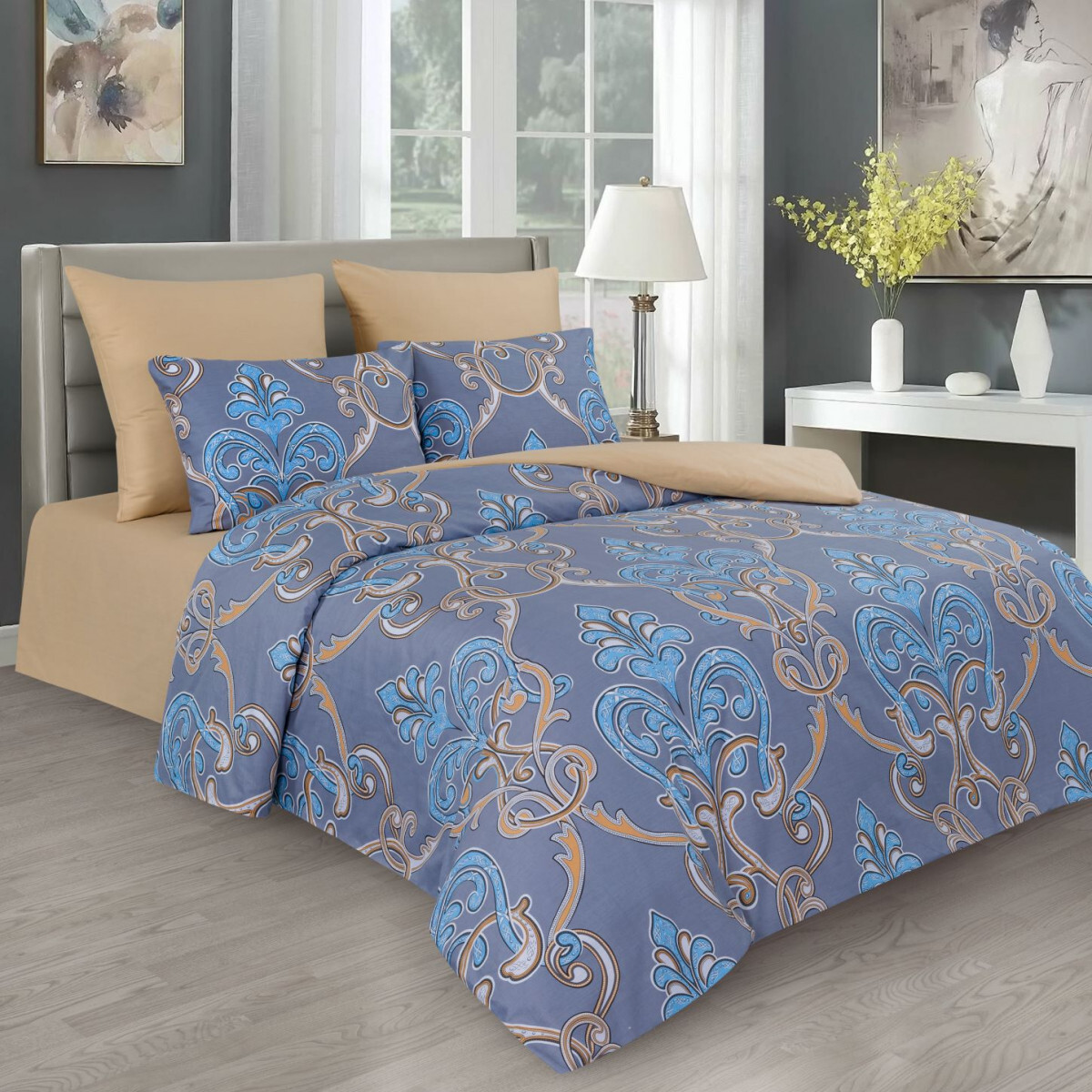 - Евро (пододеяльник 200х220 1шт, простыня 230х250 1шт, наволочка 50х70 2шт, 70х70 2шт)