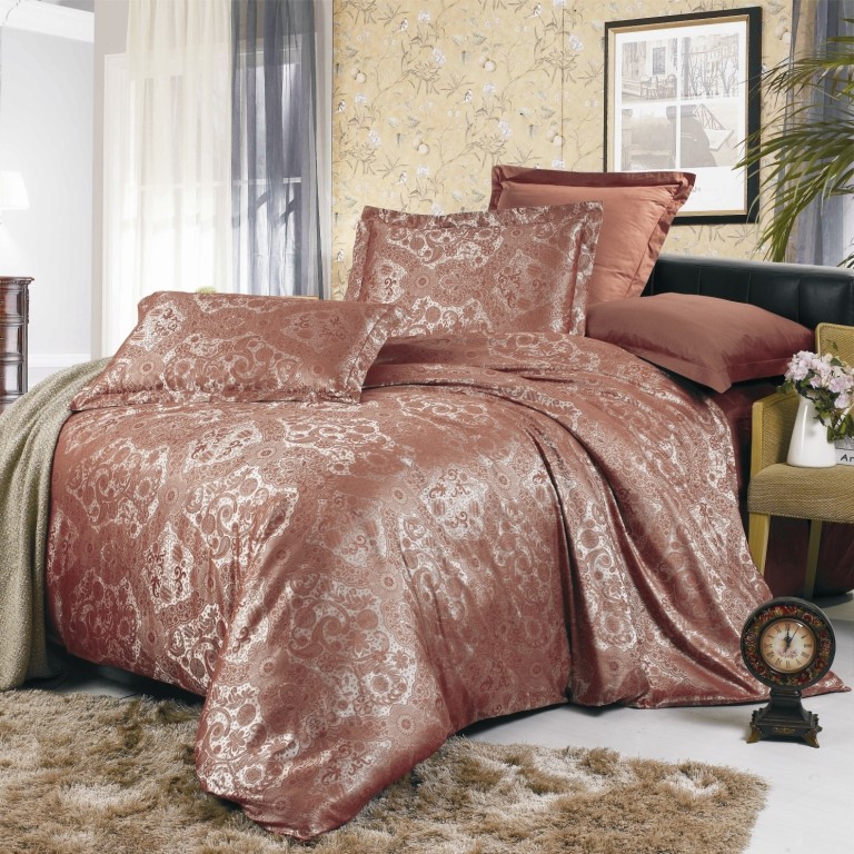 Жаккард: вискоза + хлопок. Сатин: 100% хлопок (простыня, наволочки 70*70, обратная сторона пододеяльника).