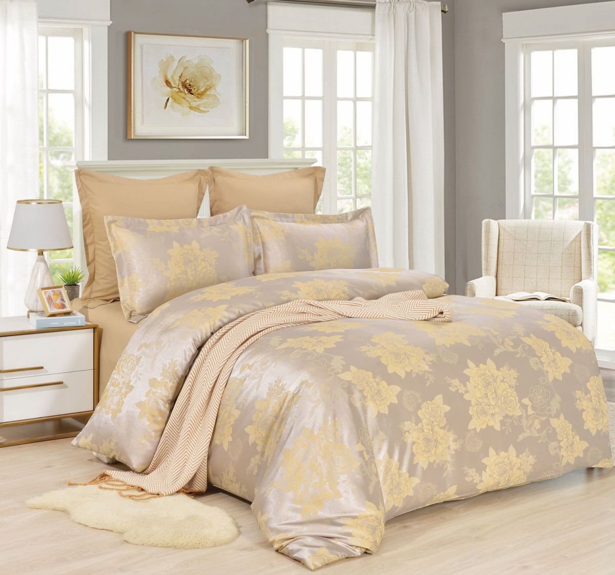 Жаккард: вискоза + хлопок. Сатин: 100% хлопок (простыня, наволочки 70*70, обратная сторона пододеяльника).