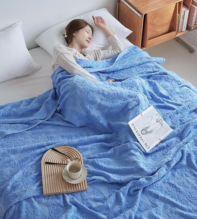 Уход за покрывалом-простыней прост и не требует особых усилий. Стирка при максимальной температуре 40 градусов и на малых оборотах, а также сухая чистка запрещены. Не рекомендуется использовать отбеливатель.
