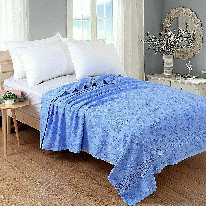 Покрывало выполнено из 100% хлопка, что гарантирует его мягкость и комфорт при использовании. Плотность ткани составляет 420 г/кв.м, что делает его износостойким и долговечным.