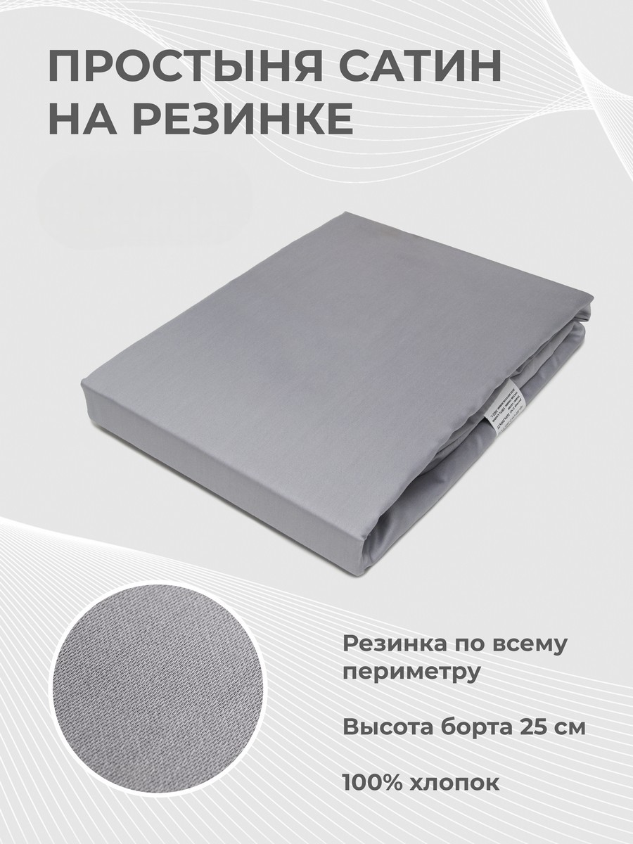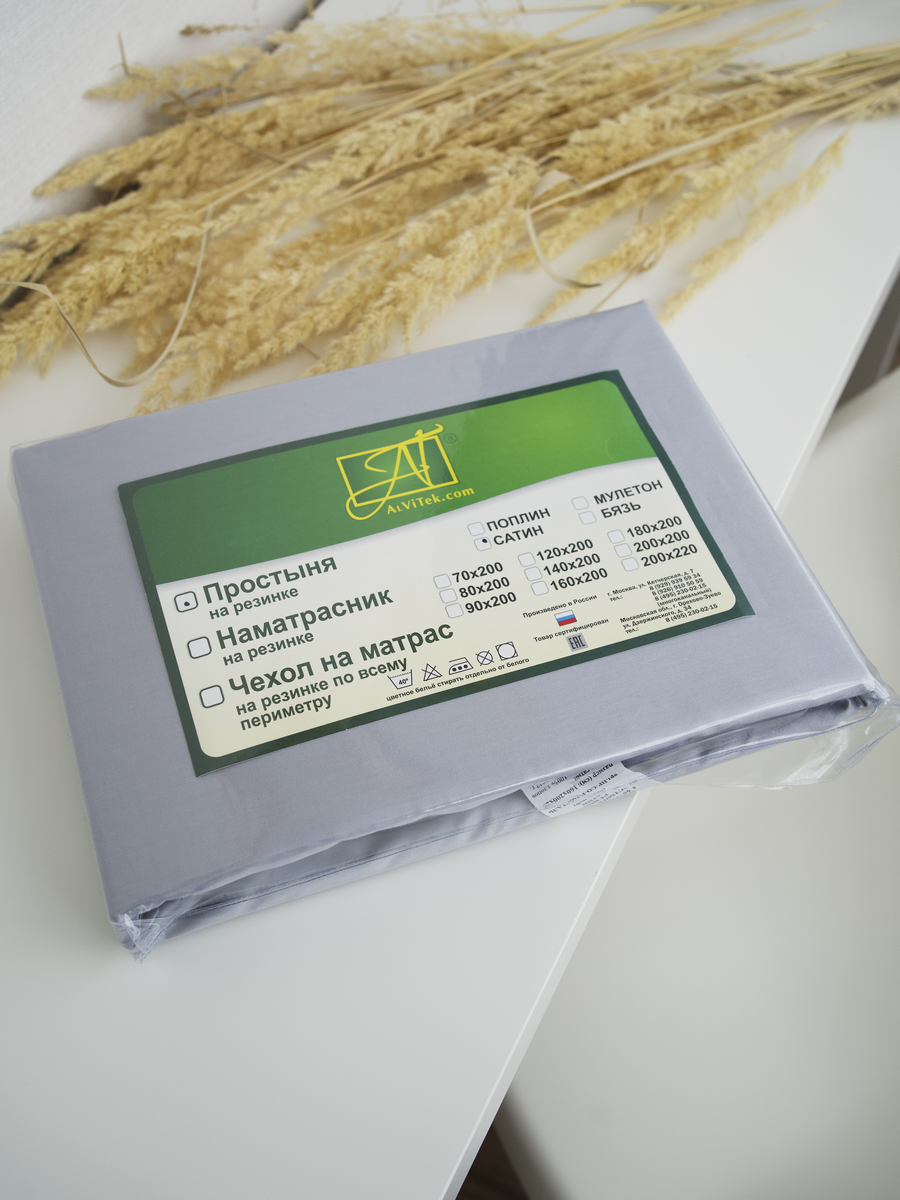 Простыня на резинке АльВиТек сатин, цвет сатальной